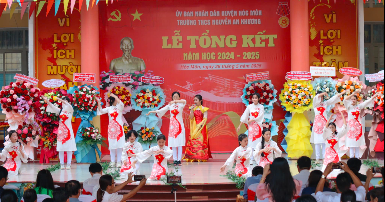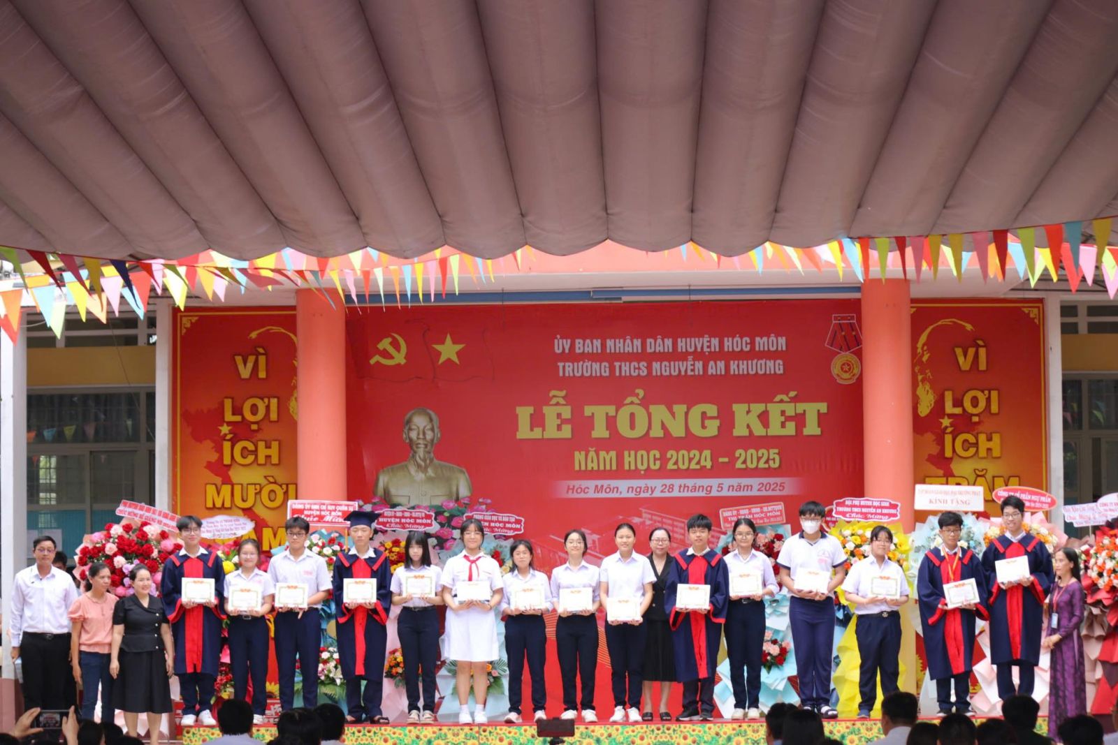 Sáng ngày 28 tháng 5 năm 2025, Trường THCS Nguyễn An Khương đã long trọng tổ chức Lễ tổng kết năm học 2024 – 2025 trong không khí trang trọng và đầy cảm xúc. Buổi lễ là dịp để thầy và trò cùng nhau nhìn lại chặng đường một năm học đã qua với nhiều nỗ lực, thành quả và kỷ niệm đáng nhớ.